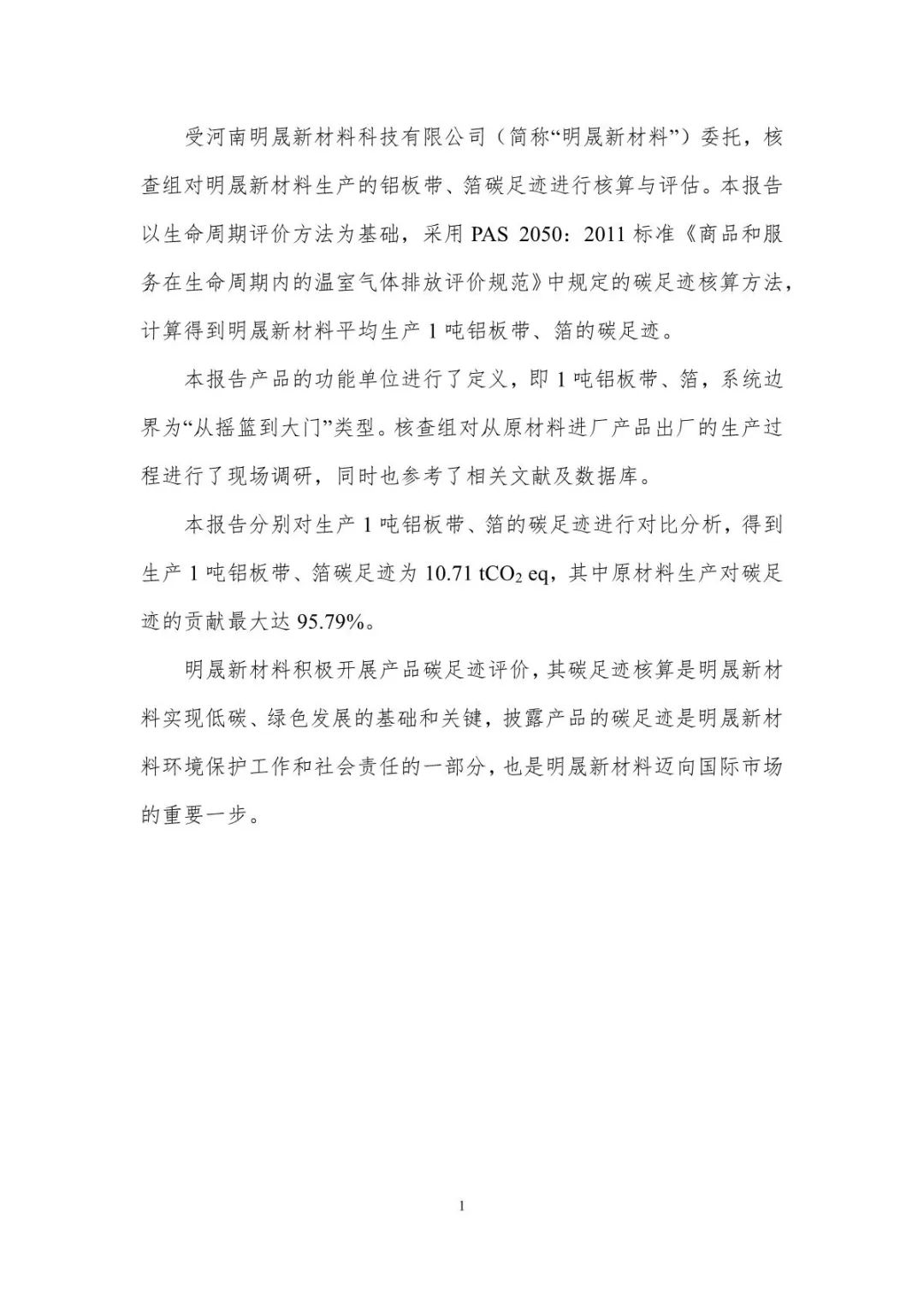 明泰鋁業(yè)子公司明晟新材料-產(chǎn)品碳足跡報(bào)告